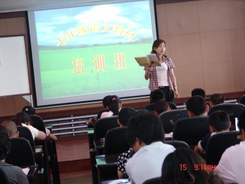 2008年秋吉林省白城市开始在起始年级使用长春版初中语文教材,我们将以县区为单位进行教材培训。7月15日,省教育学院、长春版语文教材编写组、长春出版社共同组织了洮南市初中语文教材的第一次培训。吉林省教育学院中语教研室毓明笠主任、长春外国语学校娄爽老师、长春市108中学许雪飞老师、长春出版社马世平副社长、于雷编辑以及洮南市教育局、教师进修学校、各学校领导和教师50多人参加了培训会。毓明笠主任对长春版初中语文教材做了整体介绍,娄爽、许雪飞老师分别上了现场课,并就文言文和现代文部分做了备课。